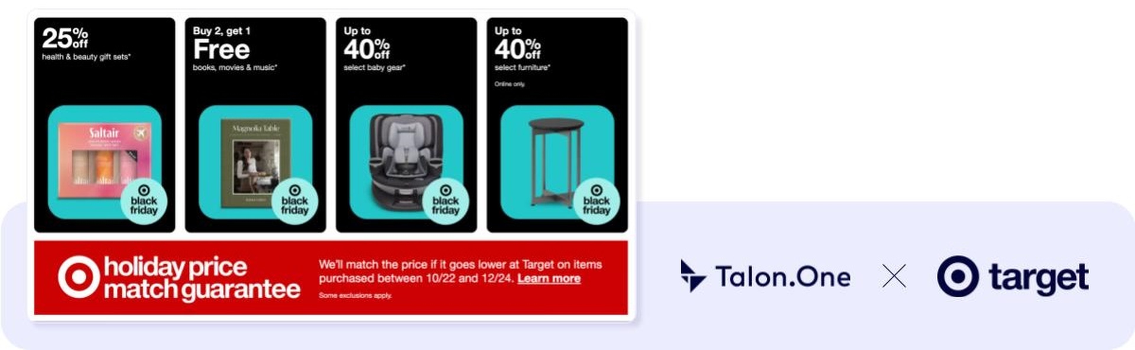 With over 8 years of experience working with leading global retailers to enhance their Black Friday strategies, Talon.One offers many of the effective promotional mechanisms employed by Target. Talon.One integrates seamlessly into even the most complex tech stacks, ensuring smooth and easy promotion redemption at the point of sale (POS). This reliability is crucial during the holiday season, when increased checkout activity can otherwise lead to costly downtimes for brands.